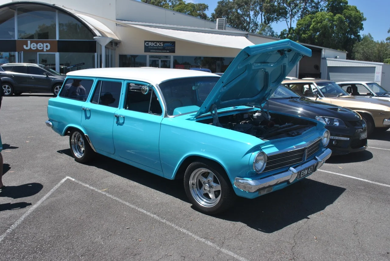The Turquoise car is a 1963 V6 powered EH Station Wagon (seats up to 5 passengers)