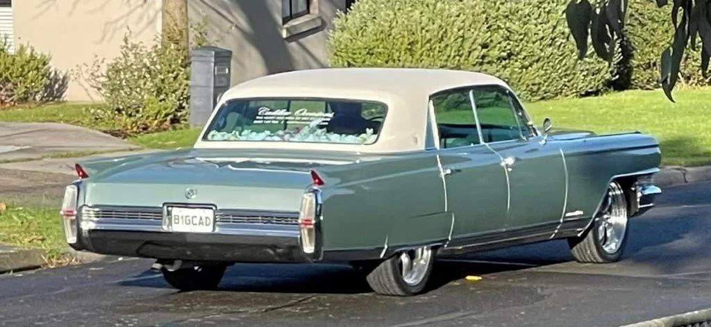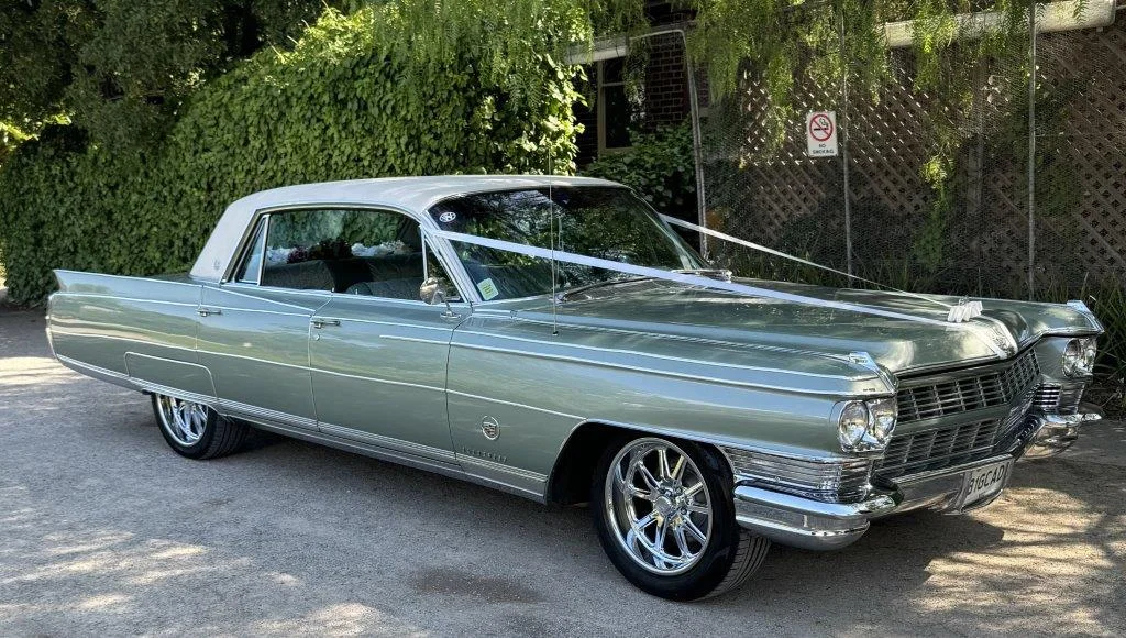Our 1964 Fleetwood Deluxe Green Hardtop with wood grain interior is a showstopper. This vehicle is named “The Pres” because it previously served in the US government. It has won four awards for being a vehicle of distinction.