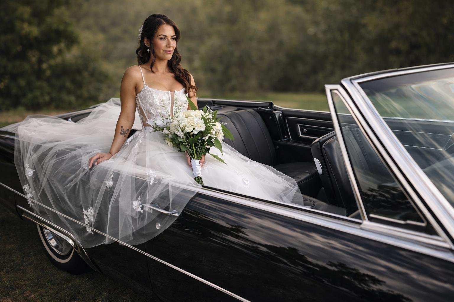 🛋️ Spacious Comfort – Plush leather seating for up to five passengers, perfect for bridal parties or VIP guests